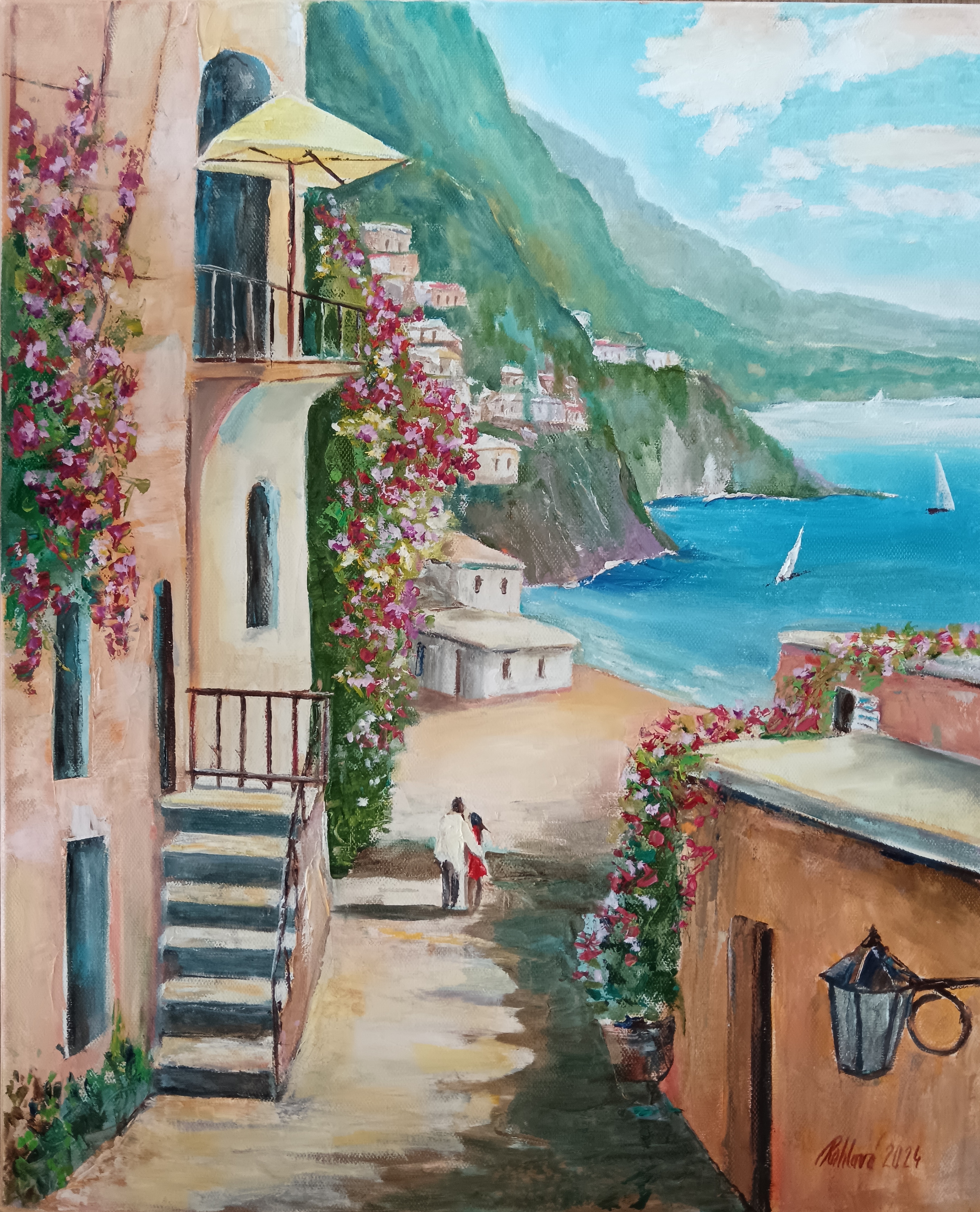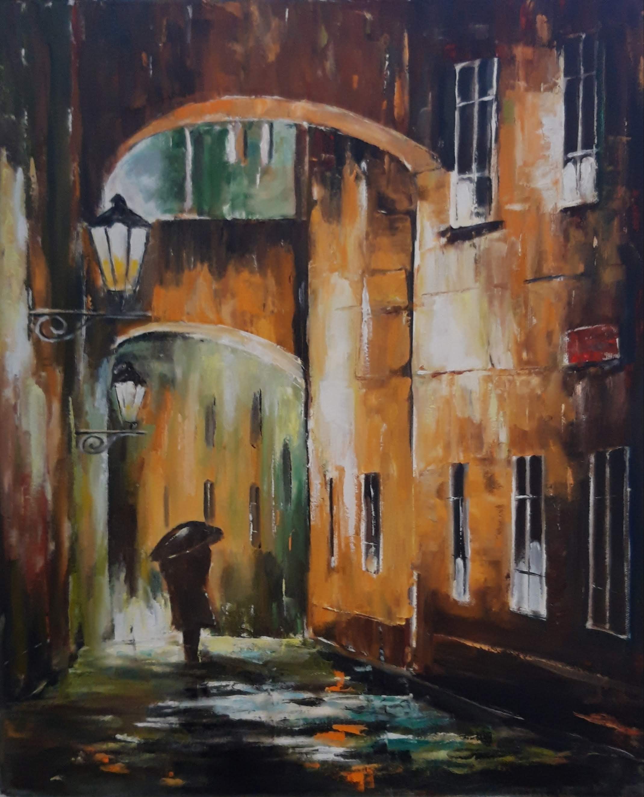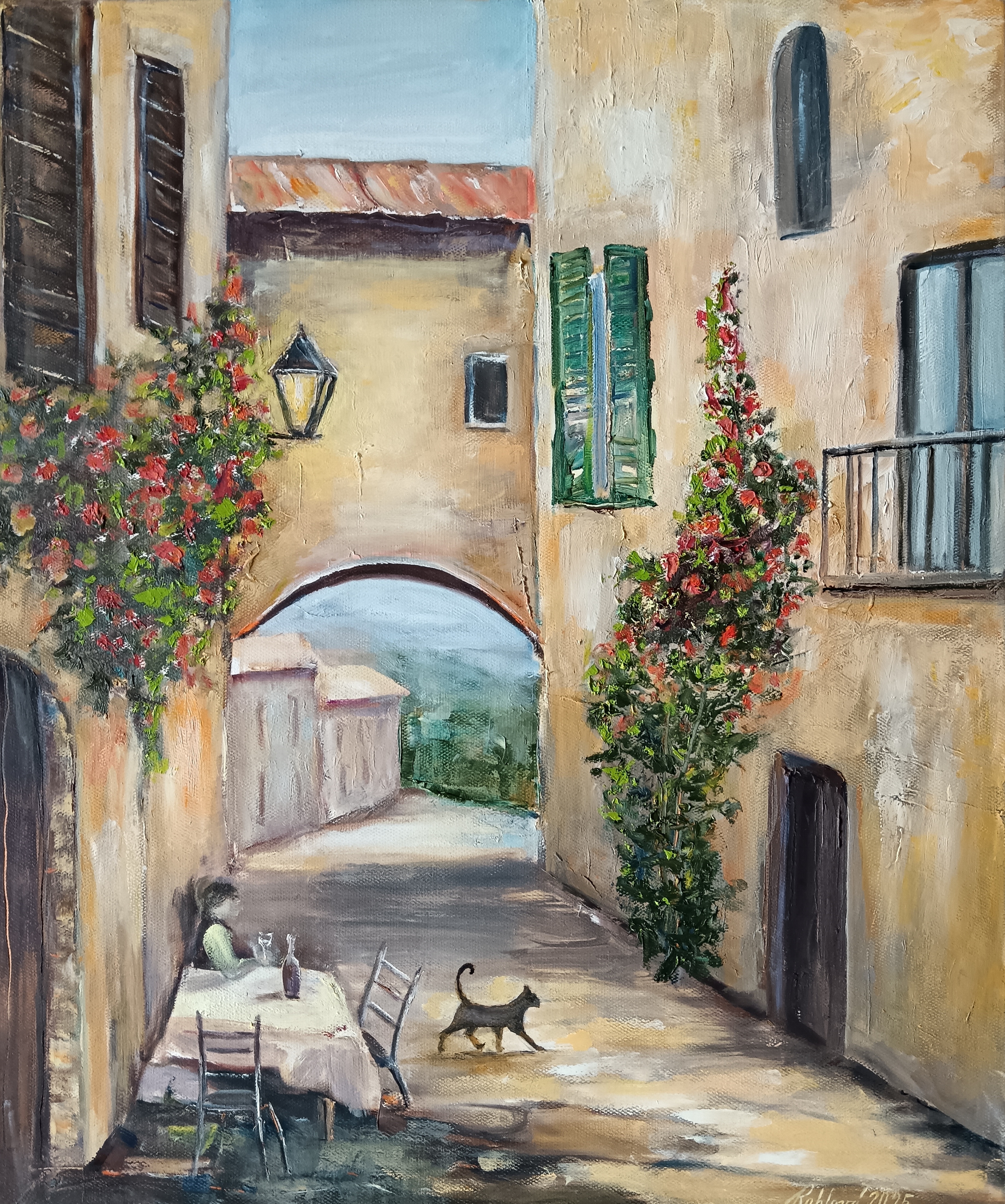 Olejomalba na plátně - ulička ve vínových tónech - originální obraz o rozměrech 45x55cm