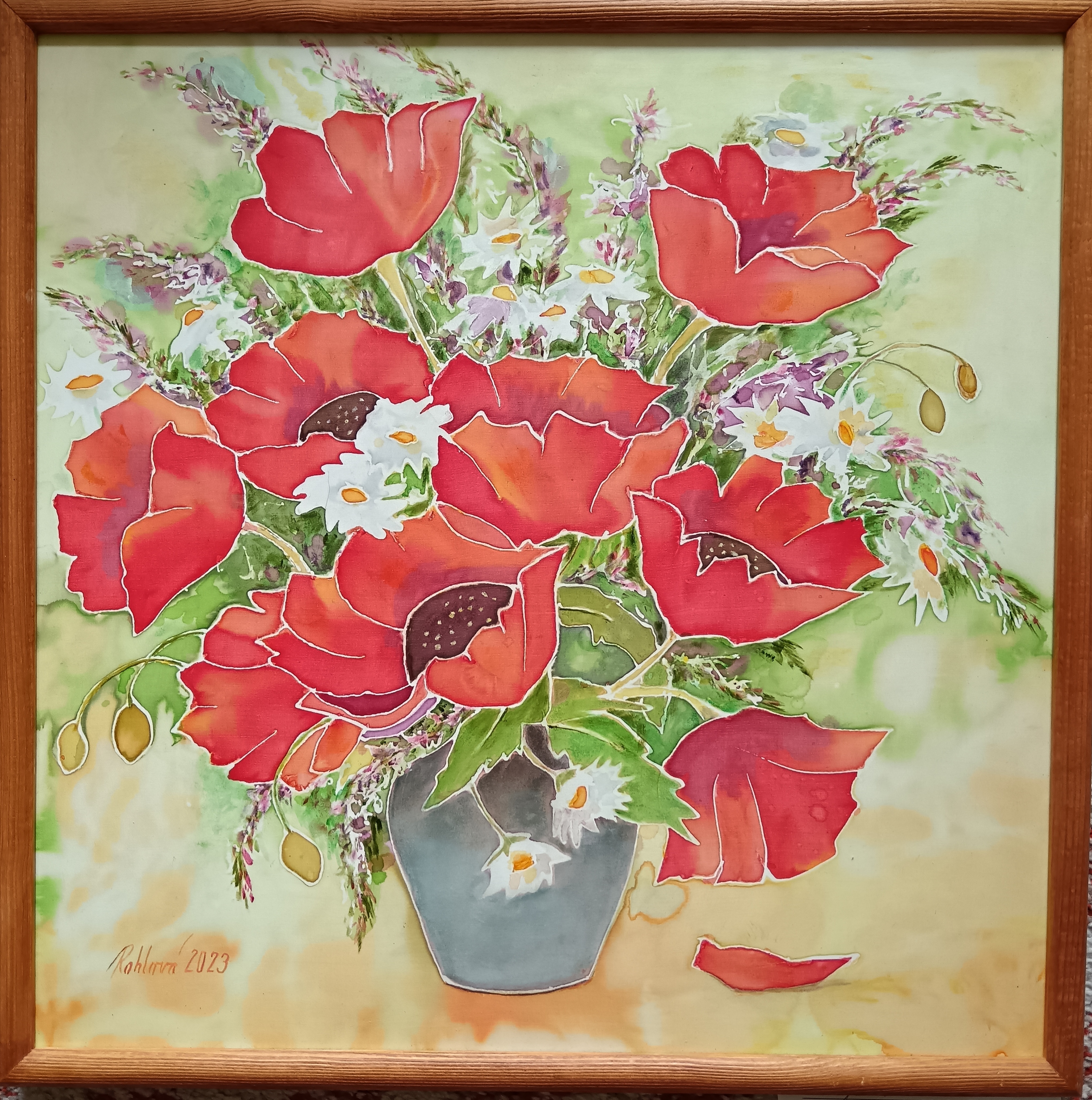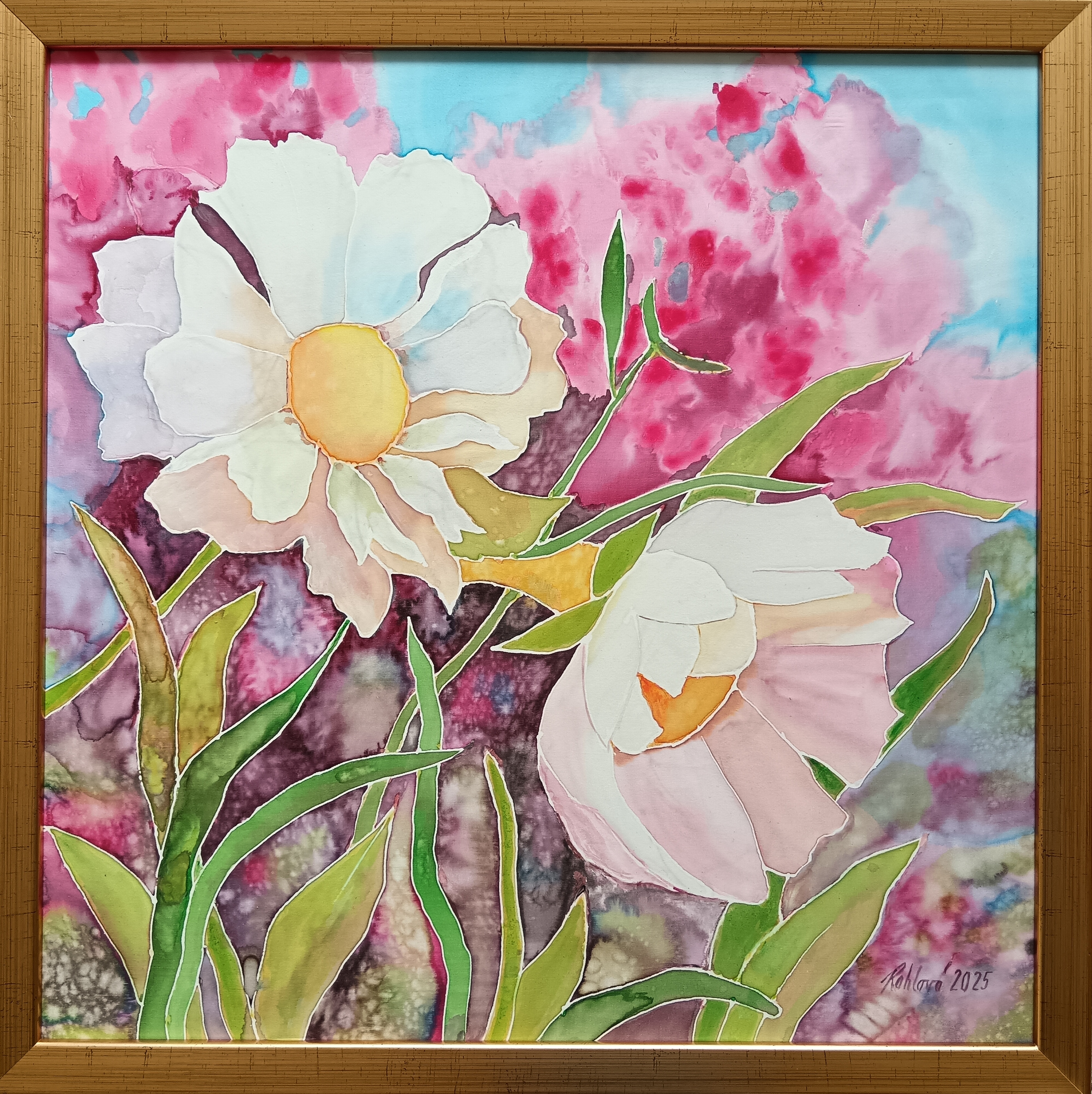 Malba na hedvábí v rámu