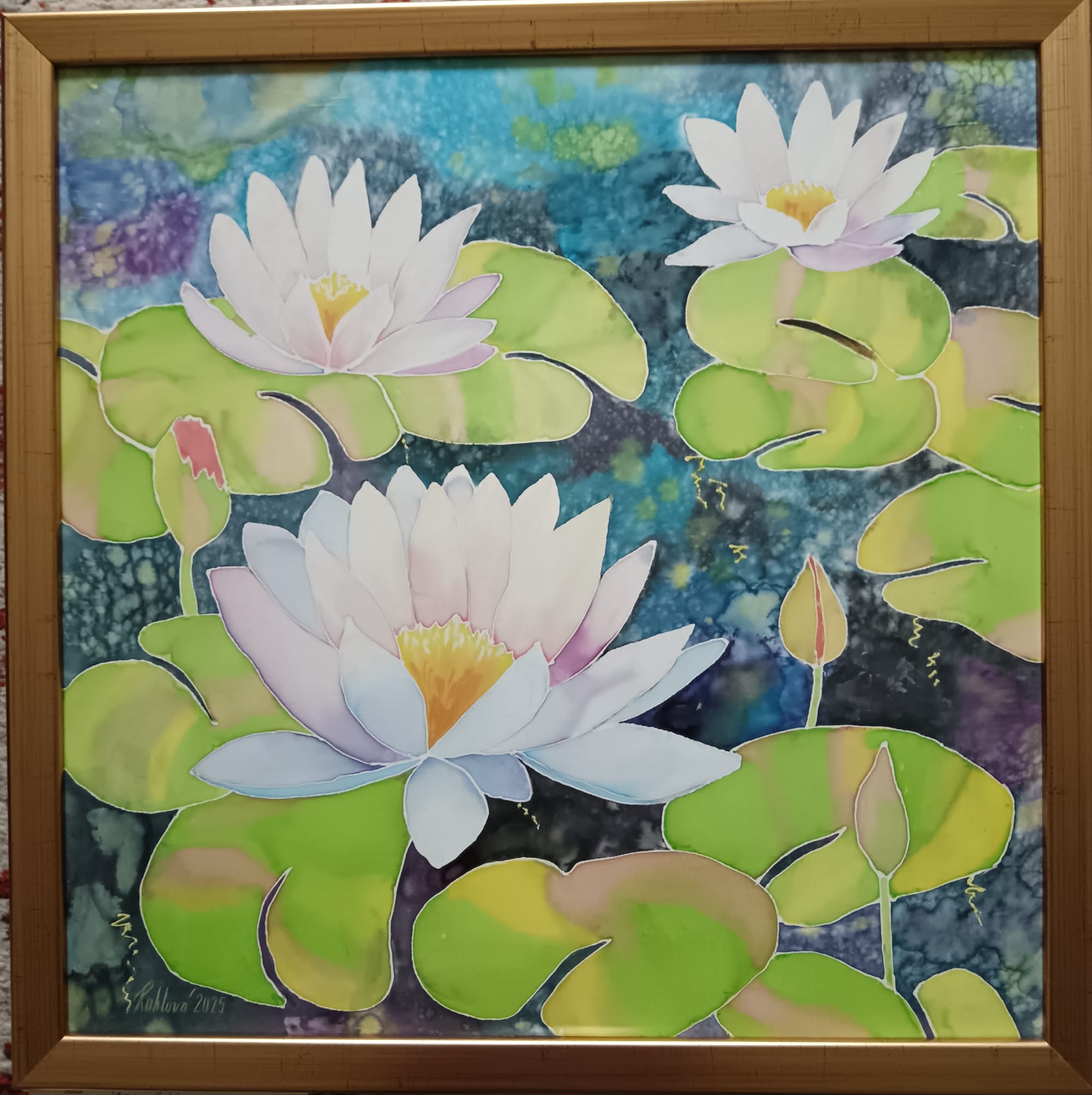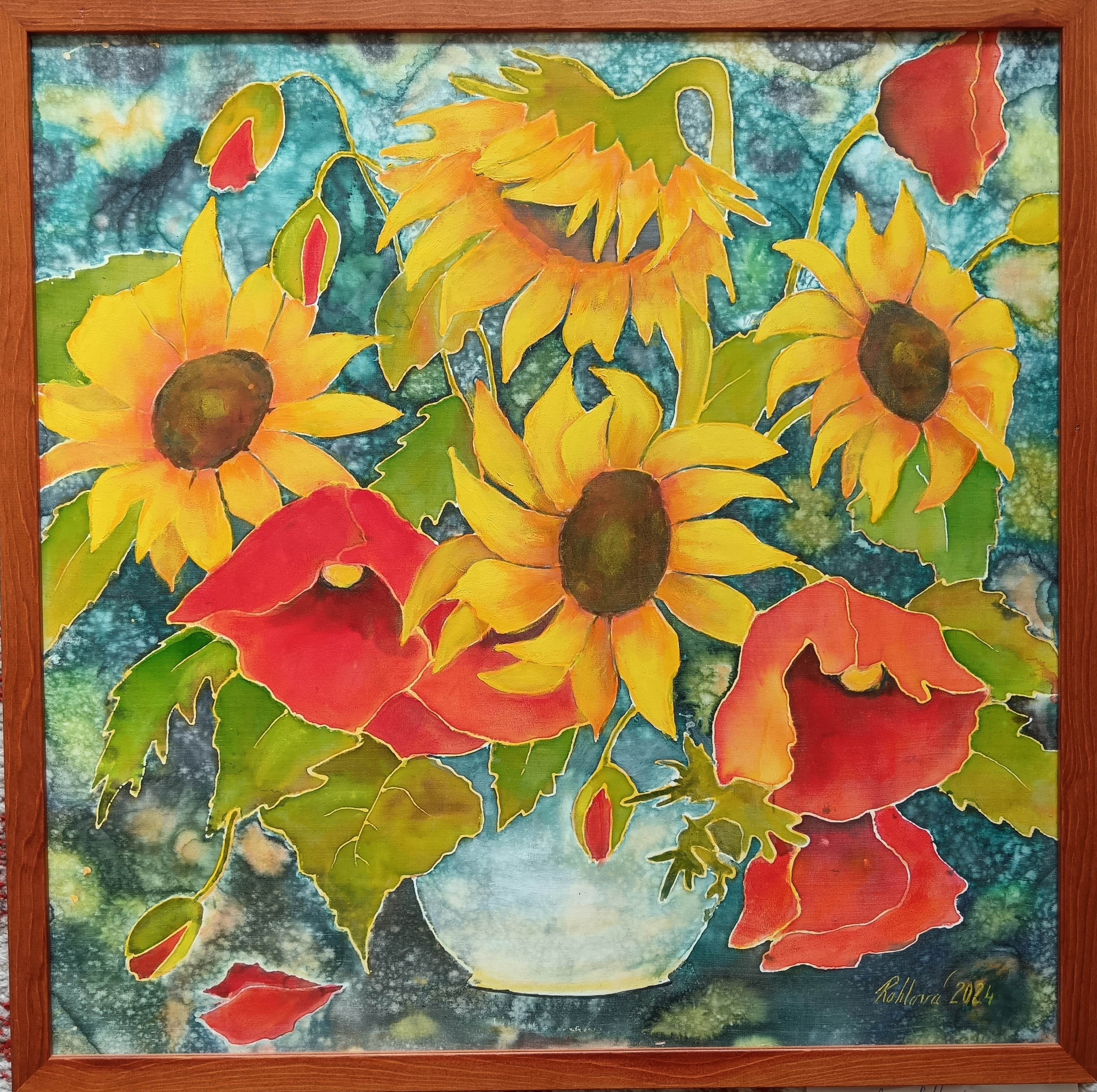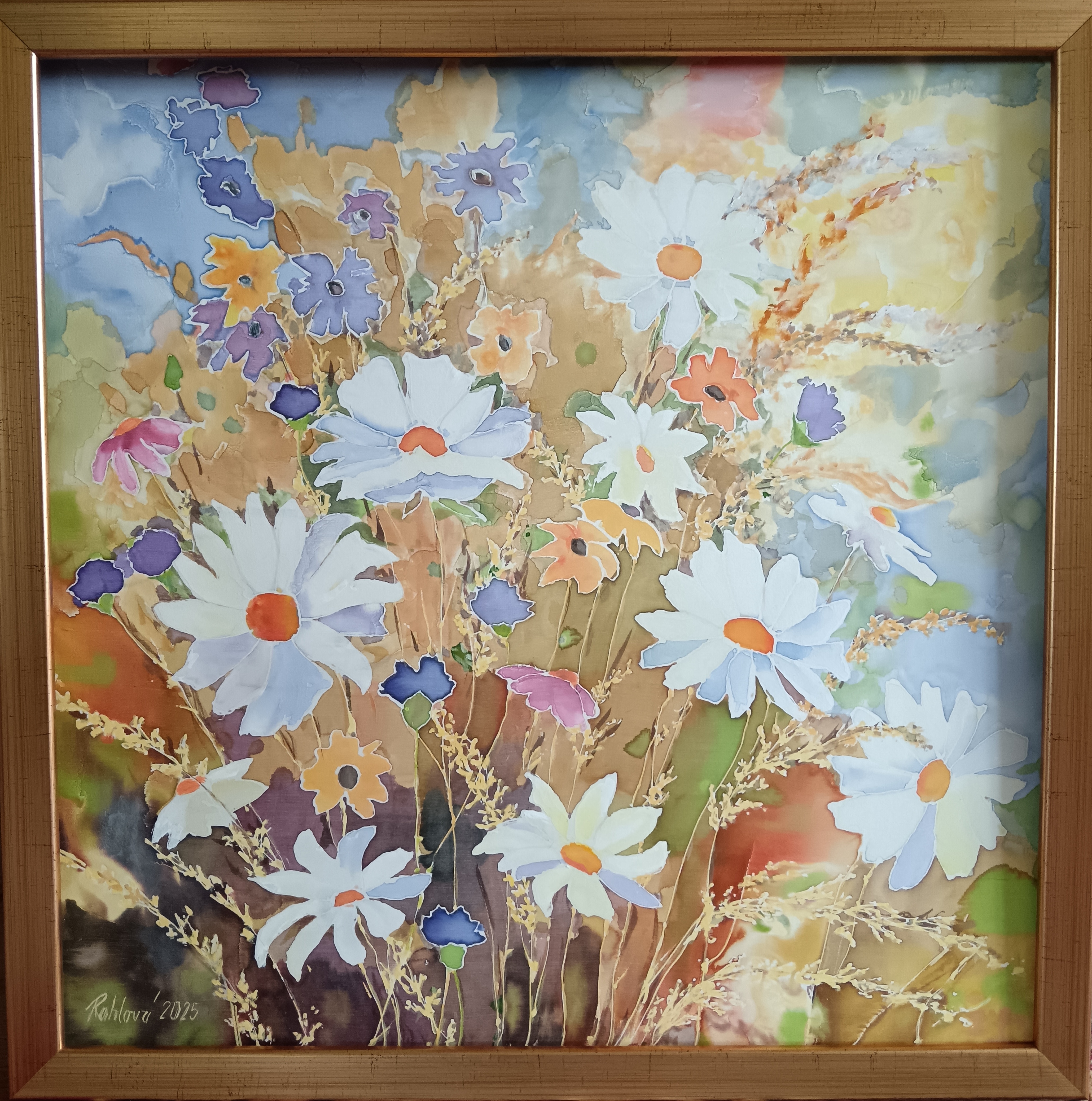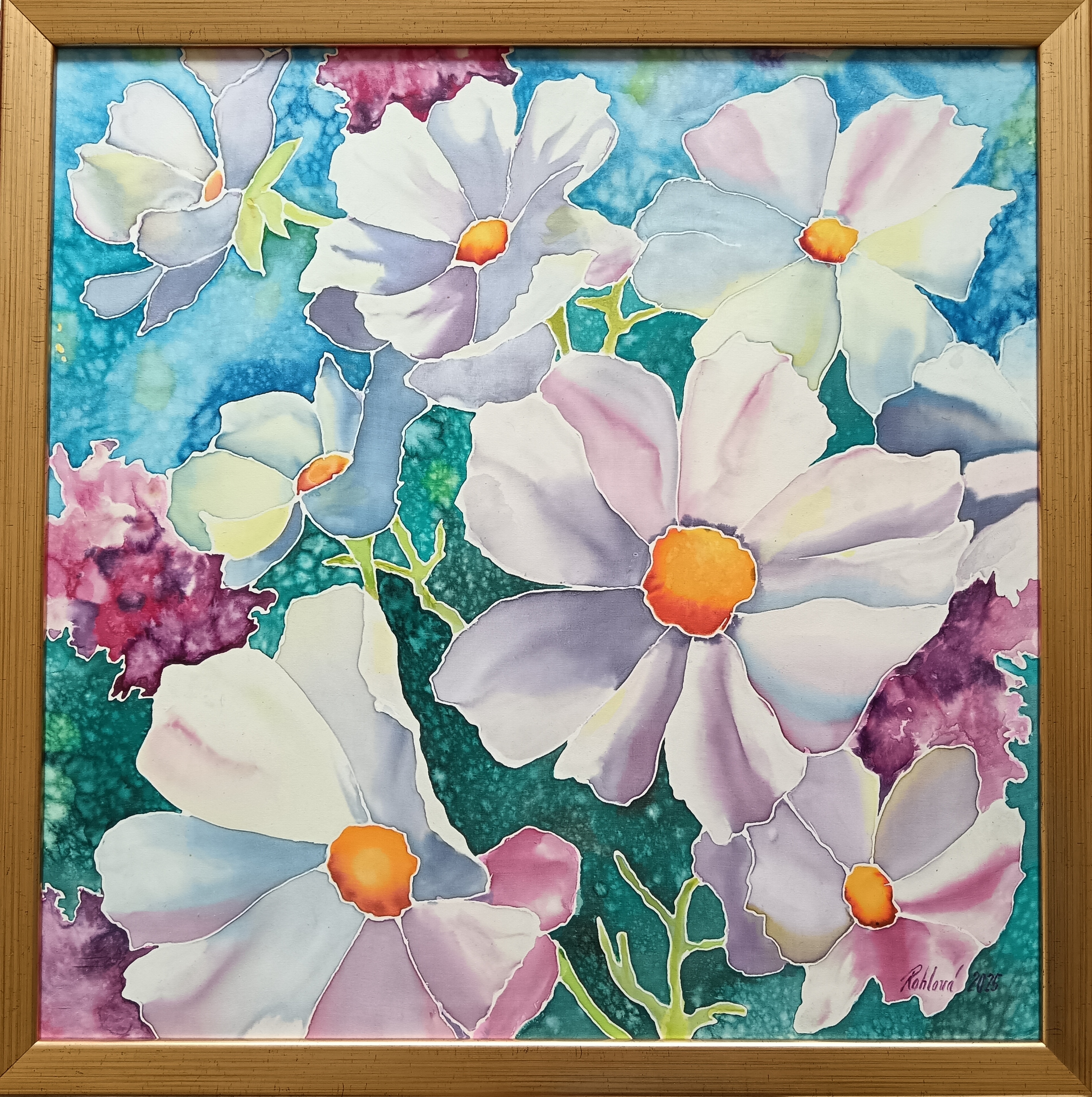 Malba na hedvábí,v rámu