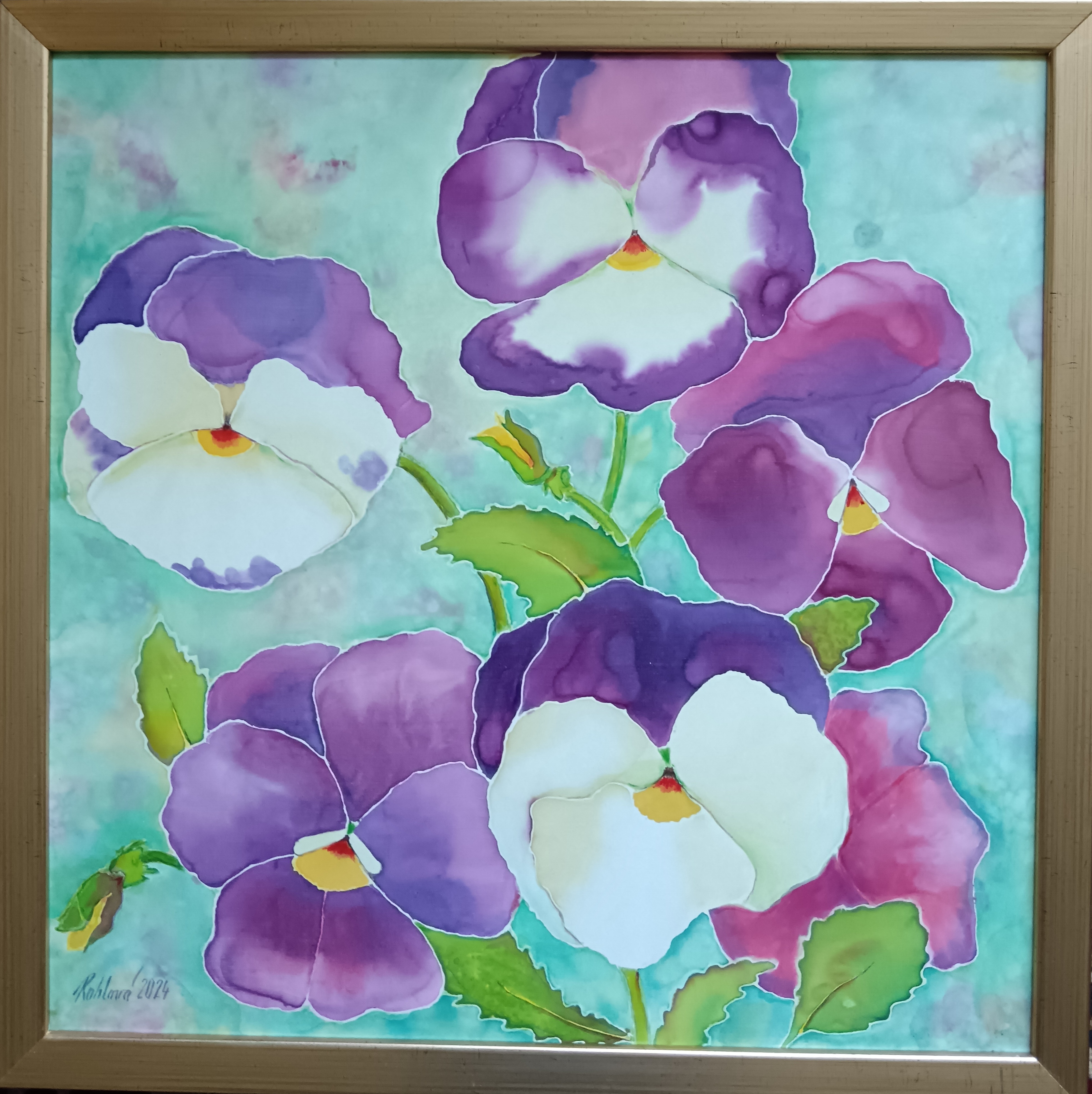 Malba na hedvábí v rámu
